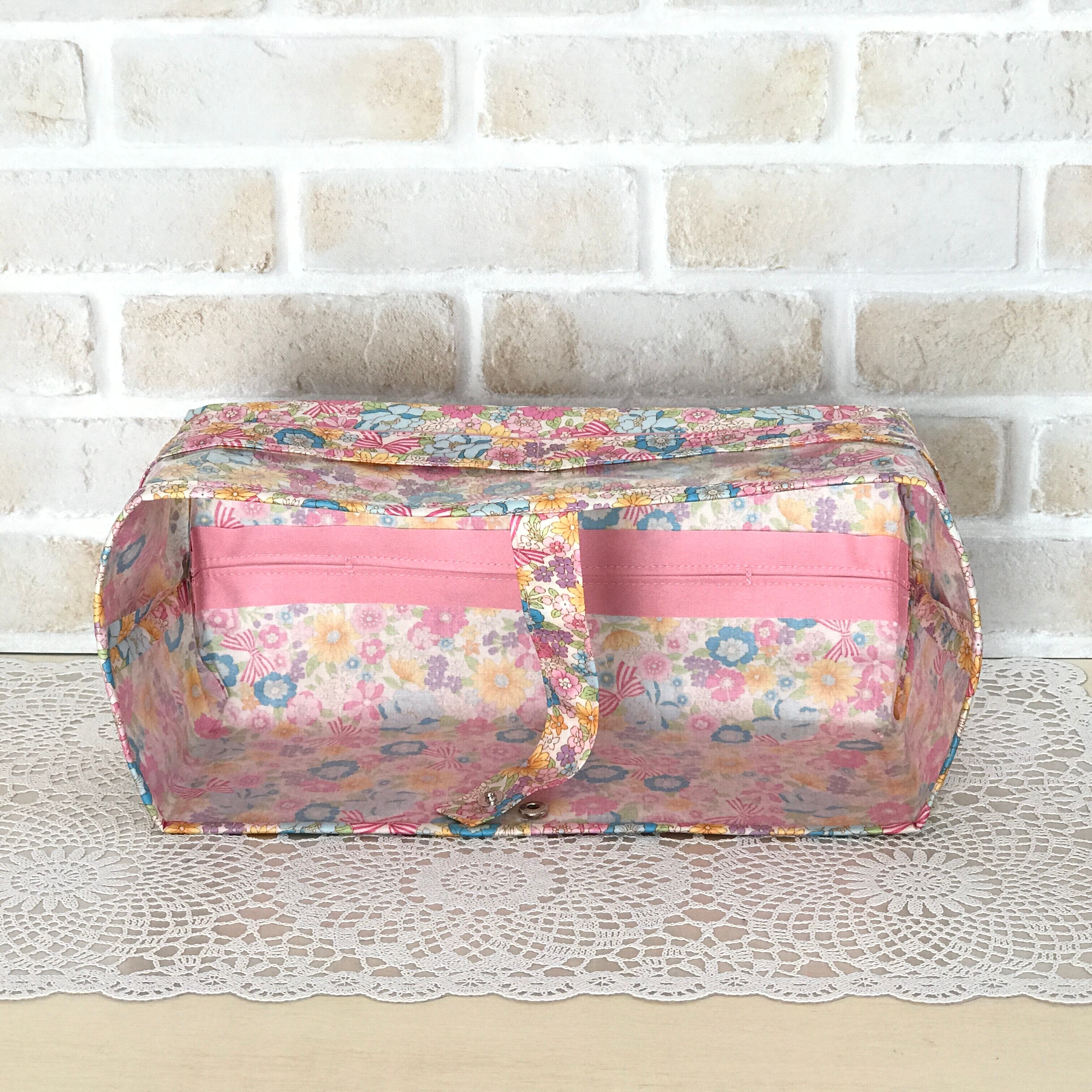 ★下面には帯状の紐にホックが付いてますので入れた物を出し入れせずにそのままティッシュ箱の交換が出来るようになっています。