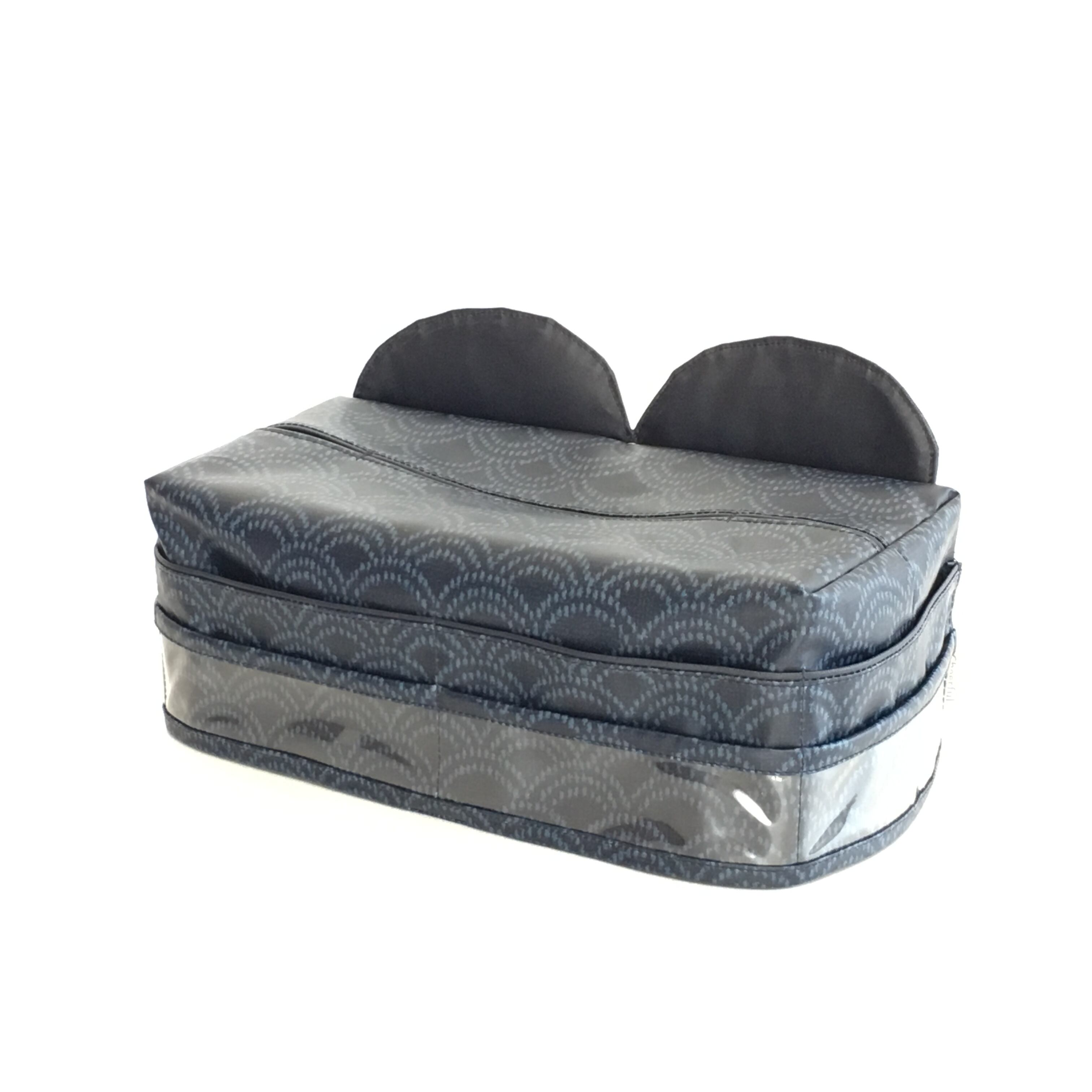 CoCo Tissueは保湿ティッシュ用(12cmx25cmx9.5cm)に製作しましたが、よく使われている薄型タイプのティッシュ箱(11.5cmx23cmx4.5cm)を2個重ねてもご使用出来ます。